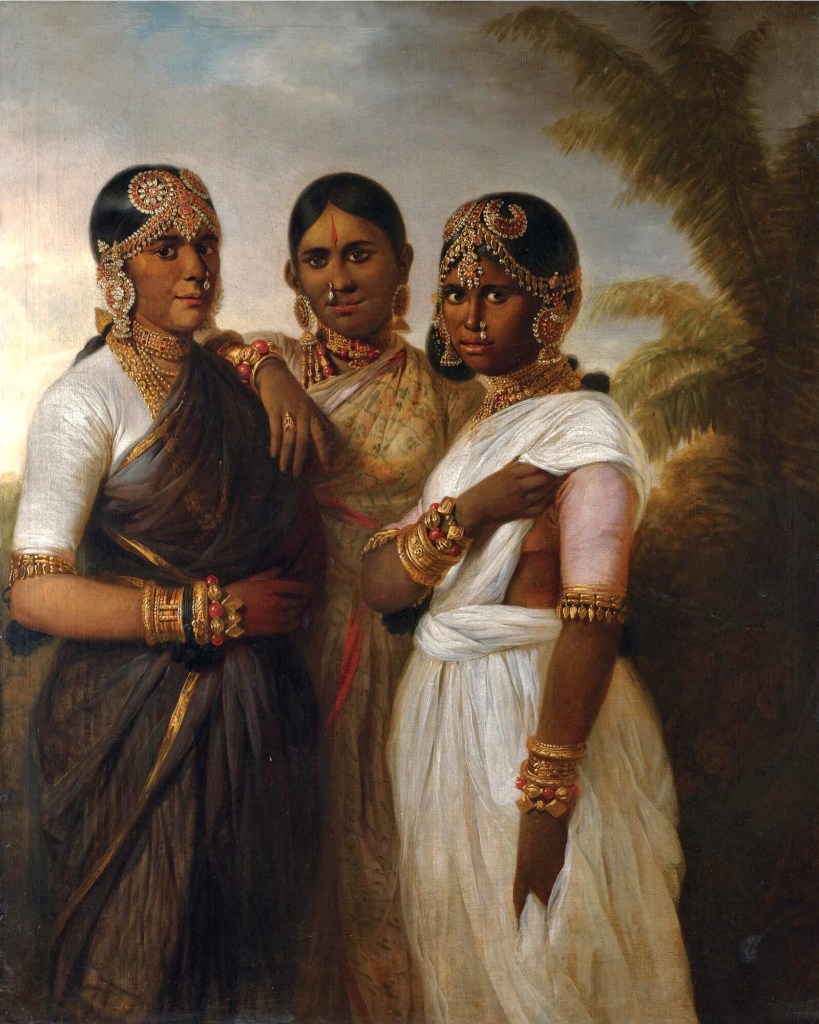 This painting by Thomas flick featuring 3 three women from Mysore was accidentally rediscovered from private collections.